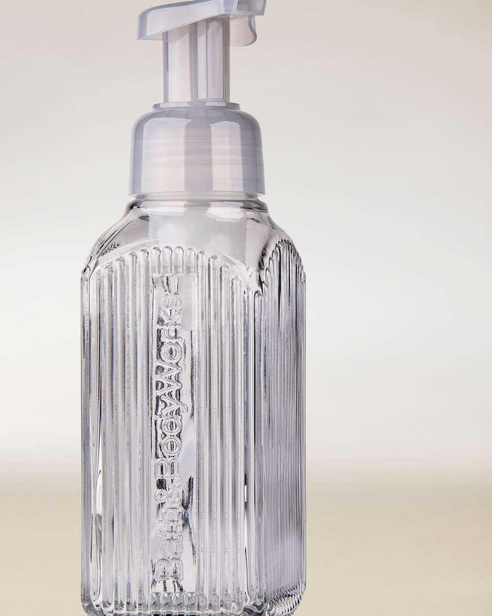 Cream Vertical Lines Gentle & Clean Foaming Hand Soap Dispenser