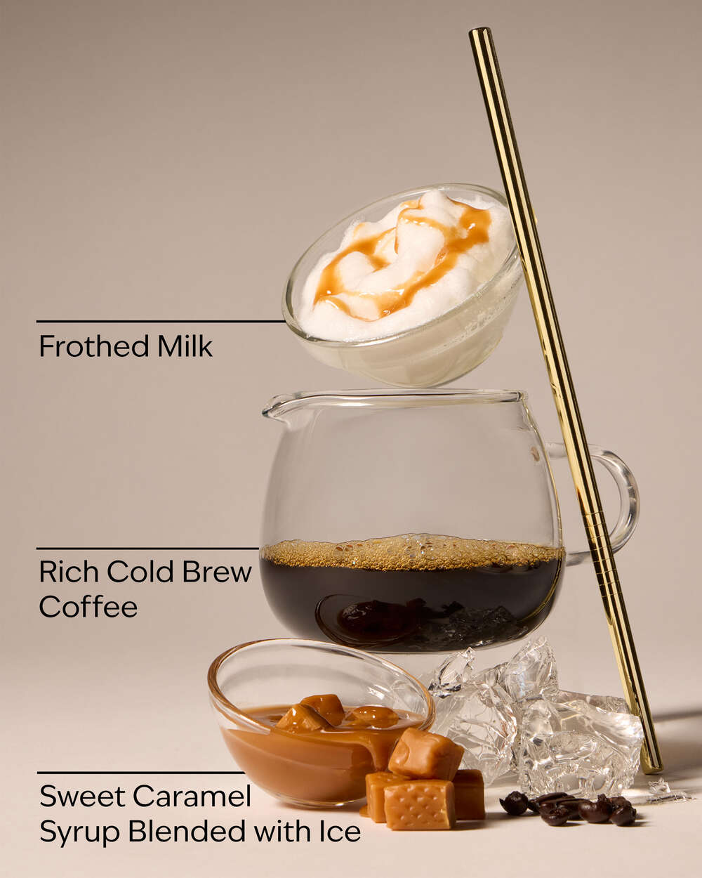 Fragrance notes: rich cold brew coffee, frothed milk and sweet caramel syrup blended with ice.