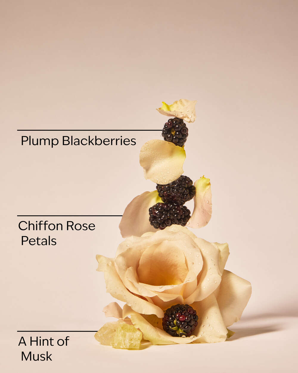 Fragrance notes: chiffon rose petals, plump blackberries and a hint of musk.