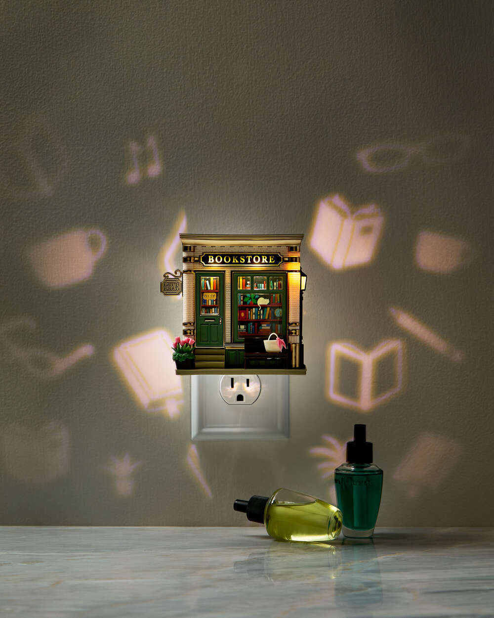 Literary enthusiasts, this one’s for you. With a charming book-filled storefront and soft, glowing light, it’ll encourage you to keep reading well past your bedtime. But here’s the real page-turner: it projects a cozy pattern with books, plants and more on the wall behind it.