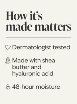 - Made with shea butter and hyaluronic acid