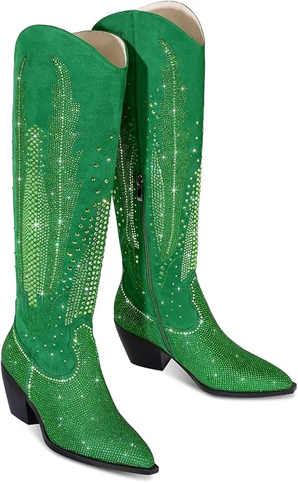 - KNEE HIGH BOOTS: The knee high cowboy boots have a chunky heel and a side zipper, easy to walk and take on&off. Experience comfort and glamour in one package with these western boots for women.