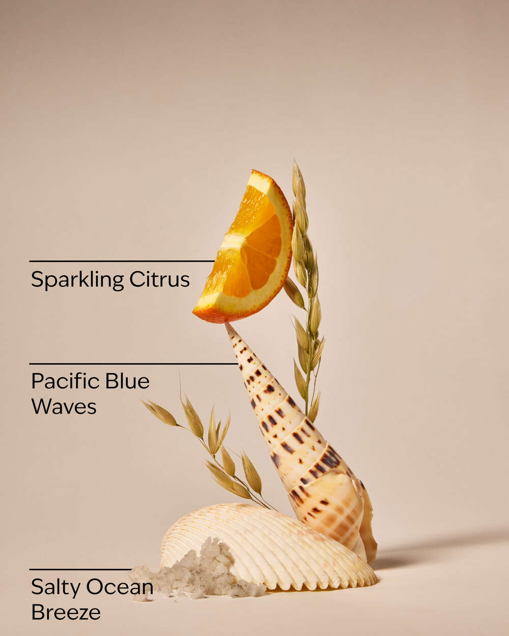 Fragrance notes: salty ocean breeze, sparkling citrus and Pacific blue waves.