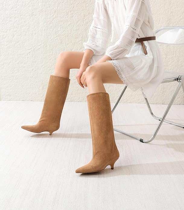 - Easy to Wear】 : The women’s boots with a low kitten heel design allow you to maintain elegance while reducing foot fatigue, making walking more comfortable. The minimalist silhouette highlights a fashionable temperament.