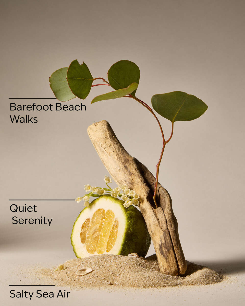 Fragrance notes: salty sea air, barefoot beach walks and quiet serenity.