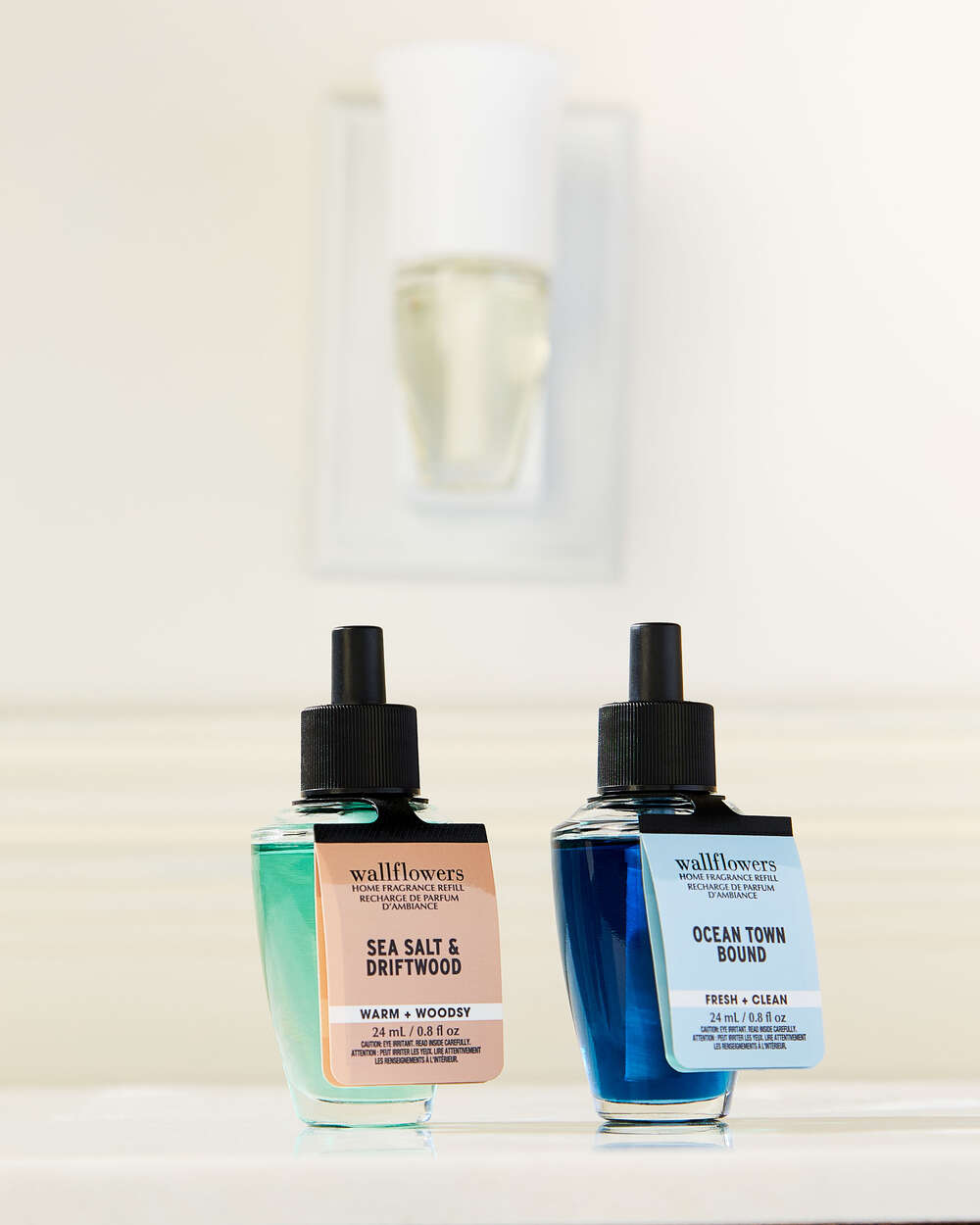 - Because Wallflowers refills contain fragrance oils that may damage finished surfaces and some plastics, always keep a 12″ clearance above your plug to prevent damage to surrounding surfaces.