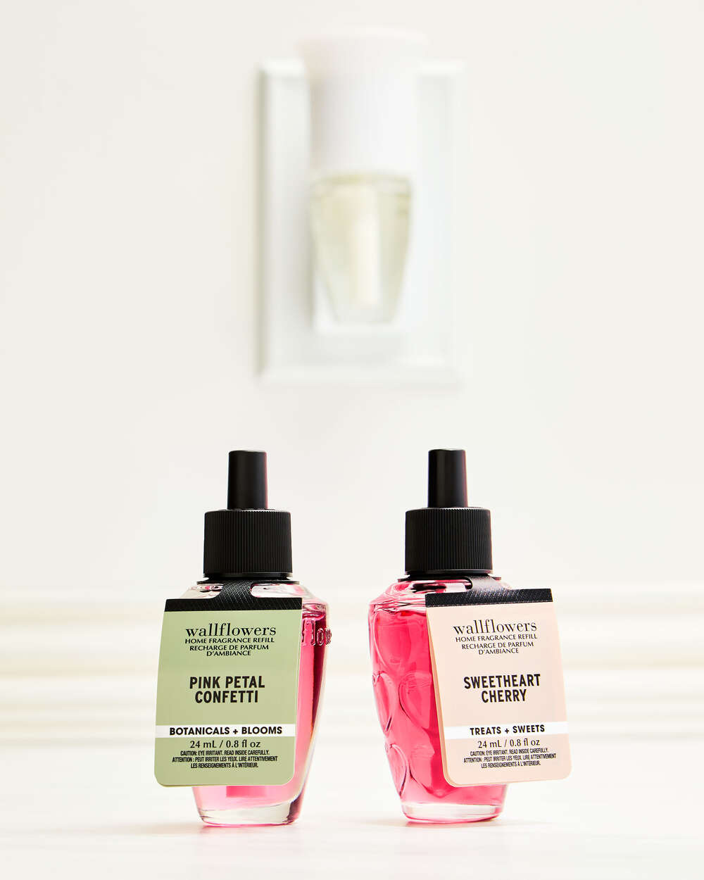 - Because Wallflowers refills contain fragrance oils that may damage finished surfaces and some plastics, always keep a 12″ clearance above your plug to prevent damage to surrounding surfaces.