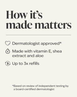 - Dermatologist approved (based on review of independent testing by a board-certified dermatologist).