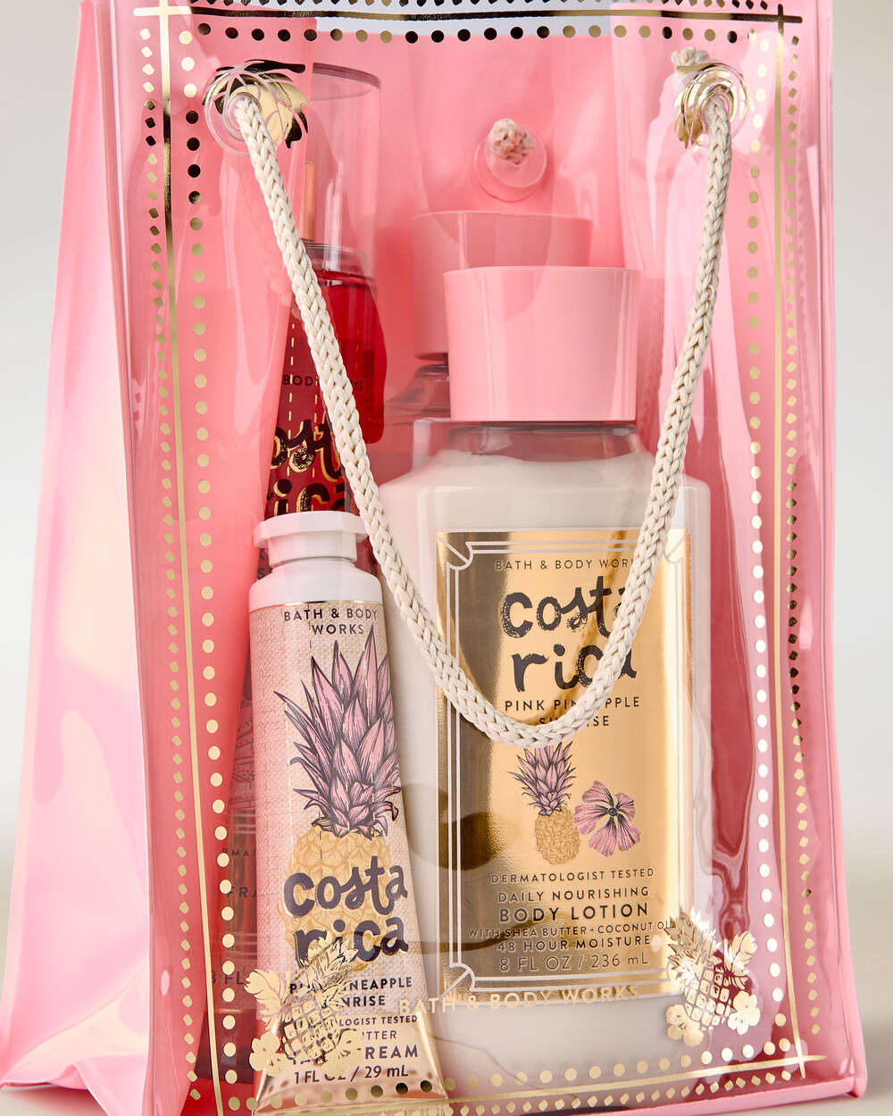 - Includes body lotion (8 fl oz), body wash (10 fl oz), fine fragrance mist (8 fl oz) and hand cream (1 fl oz).