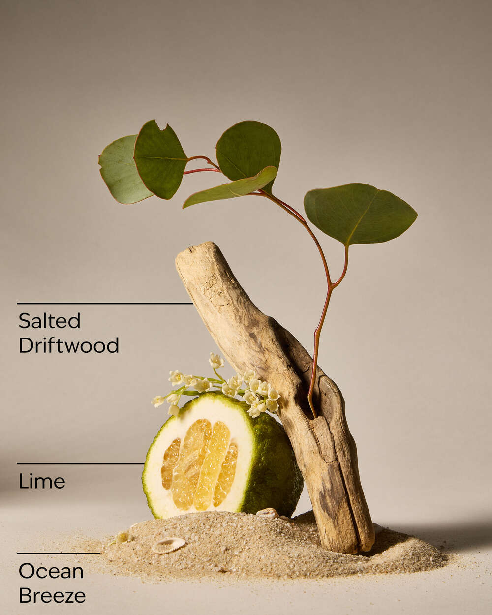 Fragrance notes: salted driftwood, lime and ocean breeze.