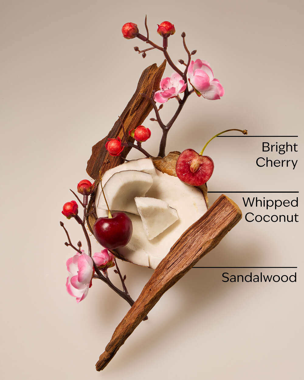 Fragrance notes: bright cherry, whipped coconut and sandalwood.