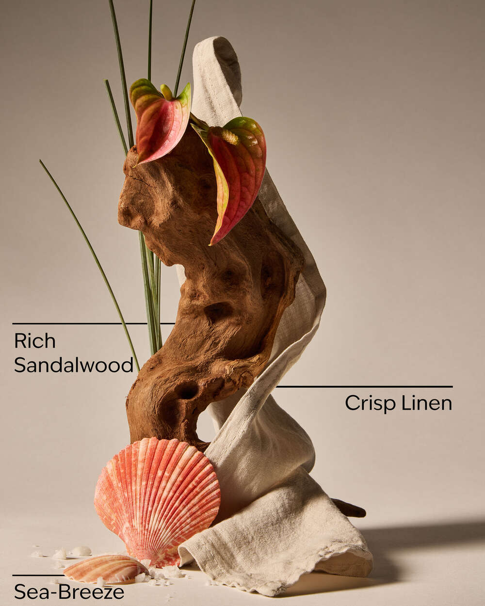 Fragrance notes: rich sandalwood, crisp linen and sea-breeze.