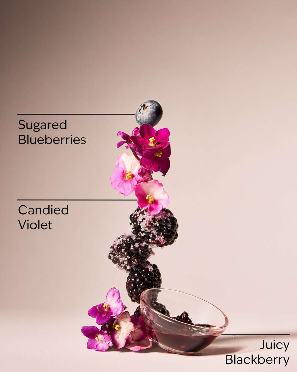Flavor notes: sugared blueberries, juicy blackberry and candied violet.
