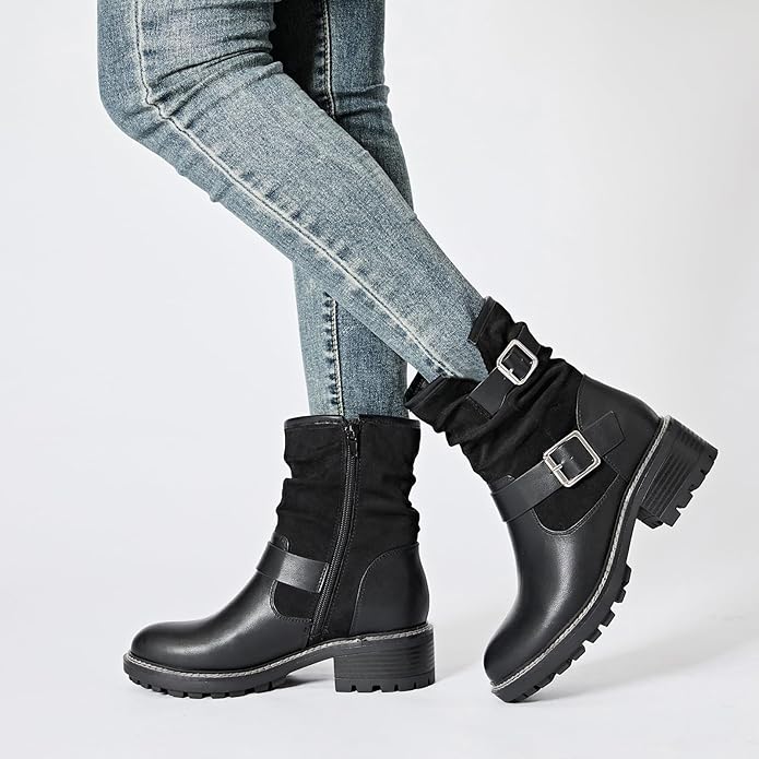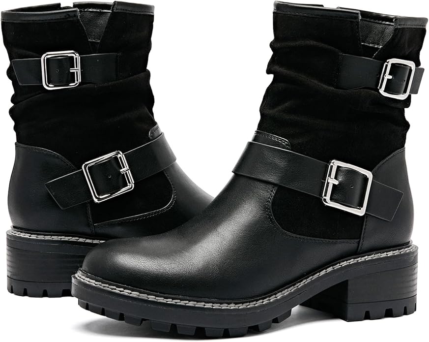 - DESIGN: These boots are perfectly designed for steady steps, with a thick lug sole, giving you just the right amount of sturdy sensibility, insole uses soft imitation head layer PU and high elastic latex design, memory rebound, soft and comfortable.